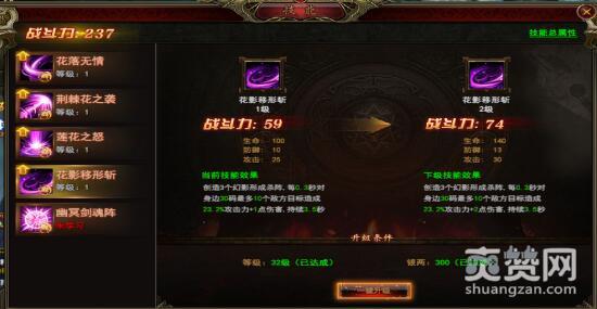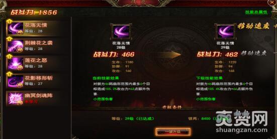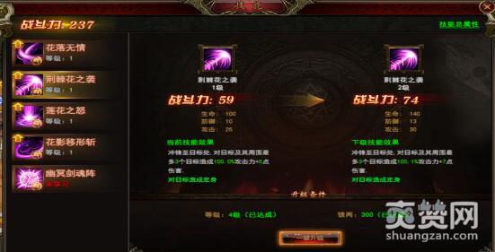初级玩家会看到凰影一共拥有五大技能,傲天完美红颜游戏里随着等级的攀升技能会不会越来越多,这个就留给大家去考证吧。什么落花无情、荆棘花之袭、莲花之怒、花影移形斩,无一不与花朵有关。最霸道的却不是这四大技能,而是最后一项“幽冥剑魂阵”。想要提升技能,首先需要升级等级,其次还要拥有大量银两,这样才能帮助技能快速升级。点击“一键升级”迅速就完成了技能提升,非常方便。