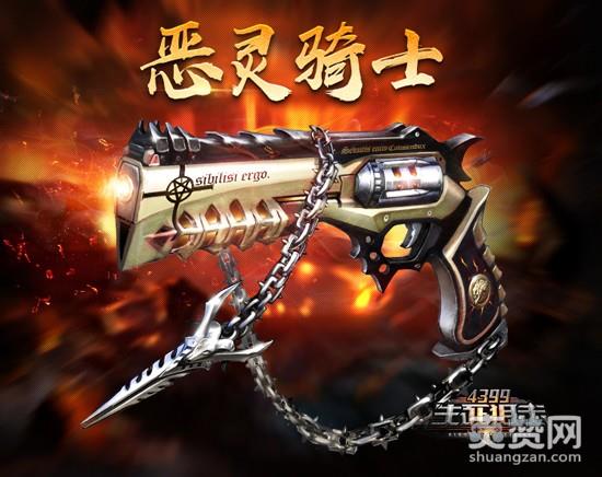 从外观看,恶灵骑士除了是一把手枪造型之外,更特别的在于枪身上悬挂着一条锁链,锁链的另一头则是可以当做近战武器的短刺。在实战中,左右开弓,威力不容小觑,而且动作十分霸气哦。