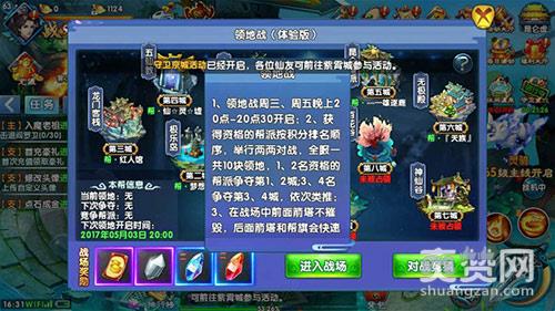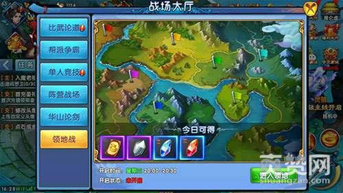 领地战的开放时间为每周三、周五晚上20点-20点30分,到时获得资格的帮派将要按照积分排名顺序举行两两对战。在《紫青双剑》中,全服共有10块领地,获得第一第二名资格的帮派将会在第1、2城之间角逐,获得第三名第四名资格的帮派则去争夺排名第3、4的城池,以此类推。