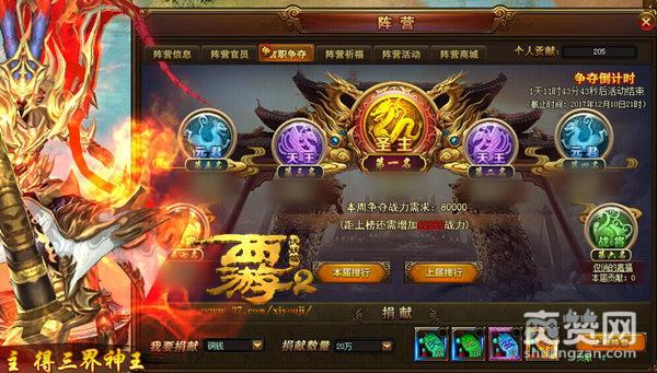 接下来就来到大家最为关心的37《西游伏妖篇》的官职争夺了,点击左上角圣主红包可打开界面,圣主可给阵营全体成员颁发圣旨、发放奖励。其中,官职争夺界面显示的是本届贡献当前排行前七名,可见,想要在官职争夺界面露脸,还要看你贡献了多少,系统一切都是为了玩家考虑啊!