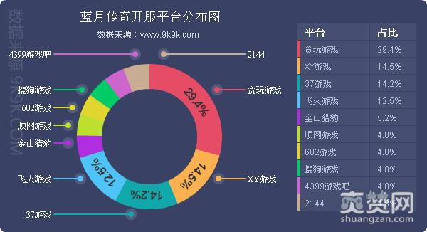 点评: 本周《蓝月传奇》开服总数略有减少,但整体开服形势稳定;新增分布占比平台顺网游戏、602游戏。
