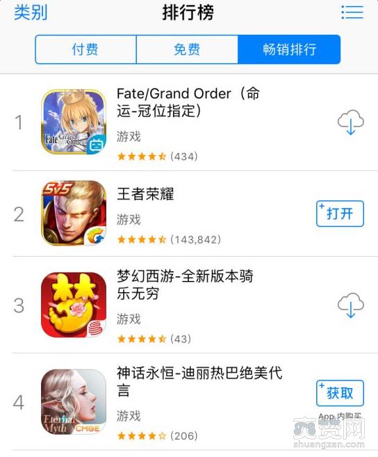 中国区的iOS畅销榜一直以来都被腾讯手游《王者荣耀》所占据,即便是网易的《阴阳师》和《梦幻西游》也奈何不了它。不过由bilibili代理的二次元手游《命运/冠位指定(Fate/Grand Order)》却在今天反超了他们,登顶iOS畅销榜。