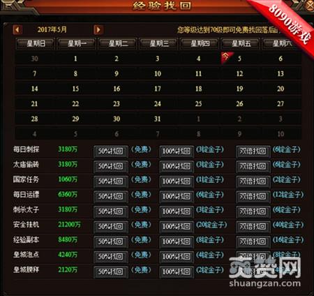 打开游戏界面的经验找回活动,玩家只要等级达到70级就可以进行经验找回,非R玩家可以免费找回50%的经验。玩家就算没有登录也会保留着每日任务的经验等待玩家上线领取。小编我一次性领取了7天的经验从80级瞬间升级到110级这感觉真的爽呆了!