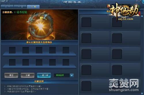 51《神仙劫》的河图洛书还有等级,在此我们可以把它称为星级。每个洛书满级是10星,每成功升级1颗星,洛书可增加额外的升星属性。什么?经验从哪里来?别急,我来告诉你。当你收集到不太心仪的洛书时,我们可以把激活的洛书进行分解,从而得到洛书经验,这个经验就可以用于升星了!
