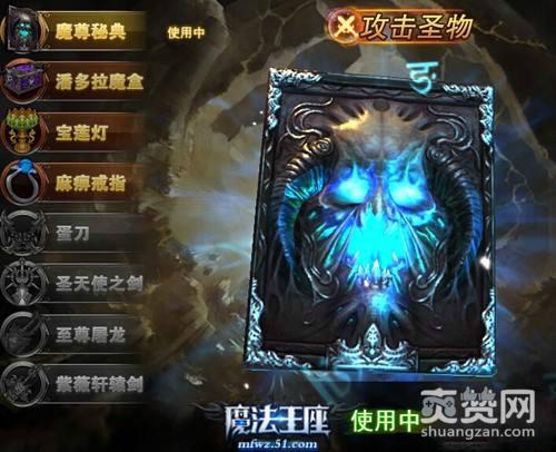 第一个圣物是魔尊秘典,属于攻击型圣物,激活它战斗力可以增加361。51《魔法王座》中激活每一把圣物最关键受益在于它们有着特殊的效果,死灵意志,攻击有几率对目标附加额外5%攻击力伤害。第二个圣器潘多拉魔盒属于51《魔法王座》防御圣物。潘多拉的魔盒灾荒、毁灭、死亡、暴虐,拿起魔盒,掌握这种力量,你准备好了?