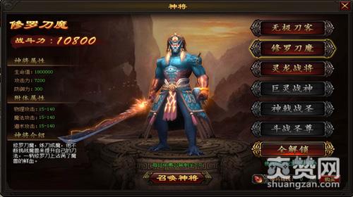 修罗刀魔,练刀成魔,他不断挑战没收来提升自己的刀法,一柄修罗刀上沾满了魔兽的鲜血。萝卜玩《传奇皇朝》神将系统助力玩家们,为玩家们提供多款神之将士与你一起驰骋战场,下面小编为大家介绍一下神将修罗刀魔。