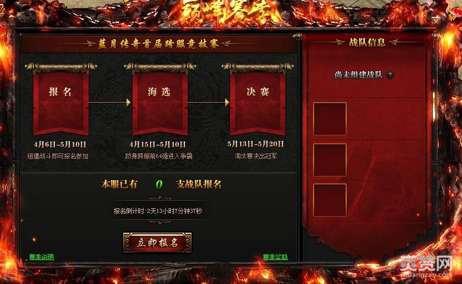 由于小编所在服有0支战队报名的关系。也就是说,从现在起,小编还有两天时间可以进行报名。