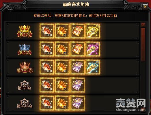 赛季结束后,根据相应的战队排名,邮件发放排名奖励。