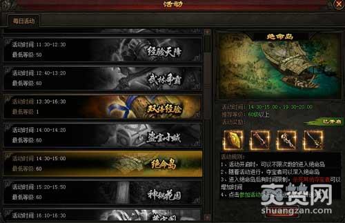 打怪,升级,打怪,升级,这重复的游戏生活是不是已经感到有些枯燥。43u《传奇皇朝》绝命岛悄然降落,机遇与危险并存,冰火两重天,生死一线牵。绝命岛共两层,第一层为安全区,玩家可以自主进行战前补给,第二层为BOSS层,会刷新超级BOSS一只。 活动开启时,玩家可以通过沙漠土城的活动传送NPC进入绝命岛地图。