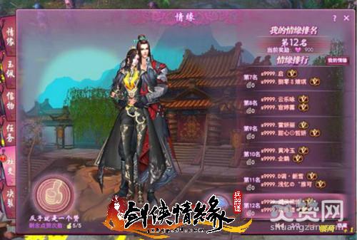 在51《剑侠情缘兵器谱》情缘界面中,玩家可查看与伴侣结缘的详细信息,当双方结缘达到一定天数后还会获得稀有的情缘专属称号。同时,情缘间还可使用专属情缘技能,从而立即到达伴侣身边。而在游戏中强化51《剑侠情缘兵器谱》玉佩可额外增加角色的属性,使用进阶道具还可为情缘玉佩进阶,使用洗练道具可以洗练玉佩的额外属性。收集情缘信物则能为角色增加额外基础属性,收集的越多基础属性增加的越多。51《剑侠情缘兵器谱》里,情缘间组队完成情缘日环,可获得丰厚的奖励。除此之外,玩家可通过本服情缘排行为其他情缘点赞,点赞排行越高获得的奖励越多。同时,玩家还可以自由更换情缘背景图。