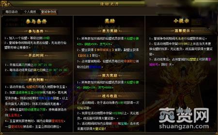 每次皇城争夺战有固定的时间,具体时间还请各位玩家参考游戏中具体的时间哦!玩家想要参加皇城争夺战的话,必须加入一个仙盟而且等级达到120级,活动开始之后,仙盟的成员可以进入地图争夺玉玺,玩家连续持有玉玺10分钟视为胜利!如果没有玩家群符合条件的话就活动结束时持有玉玺的玩家获胜,以上条件都为人满足的话,这次攻城就视为失败!