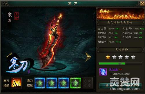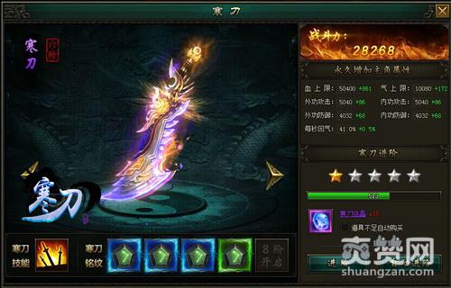 除此之外,玩家大侠还可以在9377《寒刀》寒刀品阶到达4阶时开始装备寒刀铭纹。在游戏中,寒刀铭纹能为玩家增加更多的额外属性。9377《寒刀》寒刀铭纹共分为12阶,玩家可通过荣誉商城、特定活动获得寒刀铭纹。