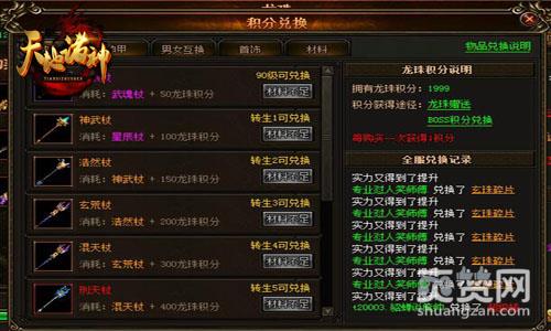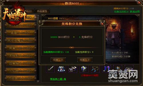 除了购买龙珠令之外,还有小伙伴们还可以使用龙珠积分。龙珠积分可以兑换各种神兵、神甲、首饰和材料,再也不用苦苦地收集装备。而龙珠积分可以利用BOSS积分兑换,10000BOSS积分=1龙珠积分,小伙伴们可以在激战Boss中获得Boss积分哦!