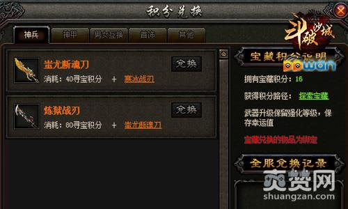 除了各种极品装备,在ppwan《斗破沙城》寻宝的过程中,玩家还可能寻到各种珍稀游戏道具,如天帝精魄、灵魂丹(大)、飞升碎片等等。此外,玩家每寻宝一次,就可以获得一次寻宝积分,寻宝积分还可以在积分兑换界面兑换神兵、神甲、游戏道具……为玩家战力助攻!