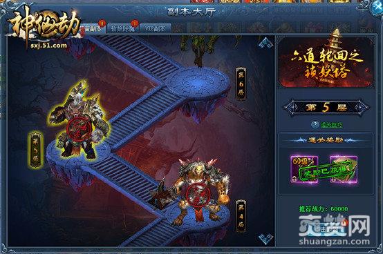 51《神仙劫》是一款以西游改编的ARPG网页游戏。逍遥自在的唯美风景、幻化无形的华丽招数、畅快淋漓的震屏大招,让玩家体验到有血有肉的修仙世界。51《神仙劫》锁妖塔装备副本,同其他可以一键扫荡的副本不同,装备副本每层只能通关一次,同样通关奖励也只能领取一次,某些特定的层数击败boss后会奖励装备升级模具,越高层的模具等级也就越高。其他层则都是精石礼包和宝石礼包,这些也是我们战斗力的重要来源。目前装备副本最高为63层,可以打到最高170级的装备模具。每层的boss都有推荐战力,只要我们的战力达到或者接近推荐战力一般通关就没什么问题。