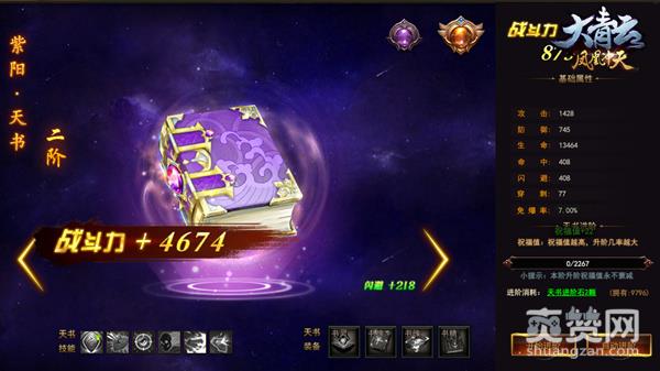在游戏中,我们常常会被敌人一个突如其来的暴击杀的片甲不留,为削减暴击率则需要穿戴具有抗暴击的装备,尽管这样做会帮助抵御一些暴击伤害,但同时也会损失其他属性加成,会削弱战斗爆发的伤害。但在《大青云》里你丝毫不用担心这一点,当角色达到300级后玩家只需消耗135颗天书进阶石就会开启“天书系统”,无需穿戴装备,就能在角色身上附加能力。