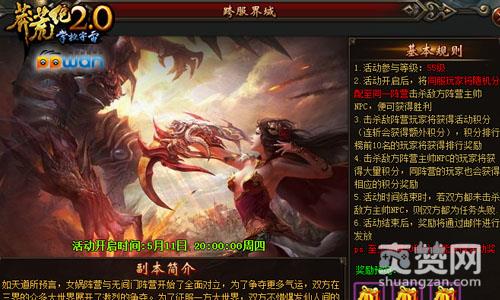 “跨服界域”在ppwan《莽荒纪》中是以服务器为单位的阵营对战,活动开启后玩家进入战场,系统会将同一服务器的玩家随机分配至同一阵营。两大阵营击杀敌方阵营玩家可获得积分,击杀敌方阵营主帅NPC即可获胜。活动结束后,积分榜前十名的玩家将得到丰厚的奖励。
