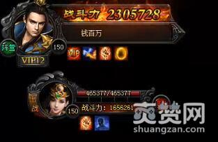 先先让我们看看钱百万的战斗力。2305728,天哪,居然这么高,连小编自己都吓了一跳,没错,确实是230万,血量方面是400612,作为法师,已经是非常高的血量了。另外要说的是他的英雄是位道士,血量也高达465377,战斗力为1666261,选择模式是强攻。