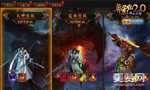 世界牢狱虽然是ppwan《莽荒纪》中的单人副本之一,但是更多的被称为VIP副本,顾名思义,这不是面向所有玩家的单人副本,这是VIP玩家们的私人副本。当玩家成为VIP1时,就可以开启天神囚徒、当玩家的VIP等级达到6级时,将会开启道祖囚徒,当玩家的VIP等级达到9级时,世界囚徒将会为你开启,各种极品道具等你来拿!