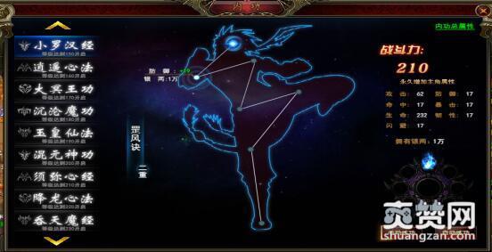 打开内功系统,20重内功心法就摆在你眼前;千万不要晕菜,每一重心法又有八层境界,每一层境界需要持续消耗银两来点亮多个内功穴位。傲天完美红颜初级内功共分为:风月诀、罡风诀、厚土诀、龙阳诀、昧火诀、无磁诀、重水诀、凕海诀、九幽诀等九大诀窍,能修到九幽诀在江湖上已经算是上流水平了。