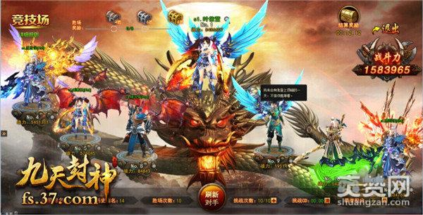 在37《九天封神》,当玩家达到39级即可开启竞技场,与玩家单挑对战,每位玩家每天可免费挑战10次,打开竞技场界面可以看到6个挑战对象,分别有玩家或者护榜神将,玩家可根据自身的实力,挑一个进行对决。