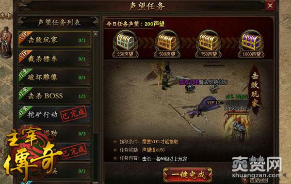 2、玩家们不用为声望值而苦恼!在游戏中声望值的获取途径多种多样,比如:夺宝奇兵、截杀镖车、挖矿活动等等日常任务,这类任务难度低、完成速度快,让每一名玩家都能快速上手!