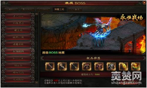 永恒战场是一个分等级段的高级BOSS地图,地图中只有一个BOSS,奖励十分丰厚。