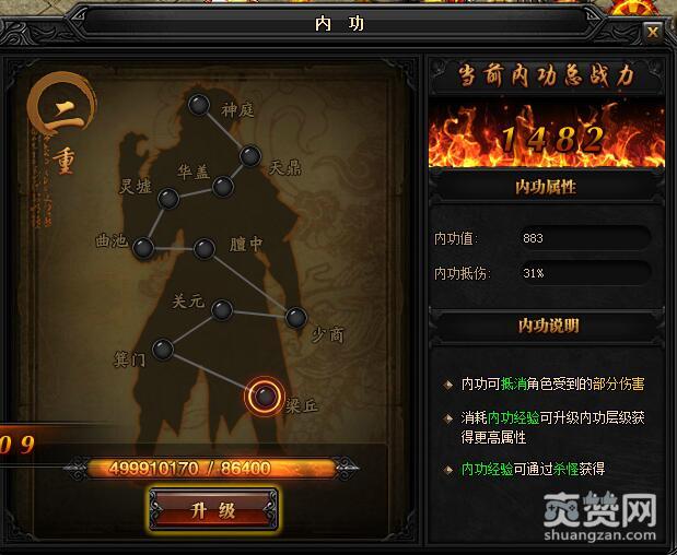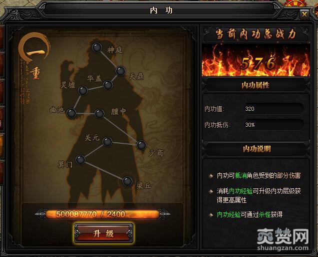 一重升级梁丘所需内功经验:2400,初始内功值:320,内功抵伤:30%。
