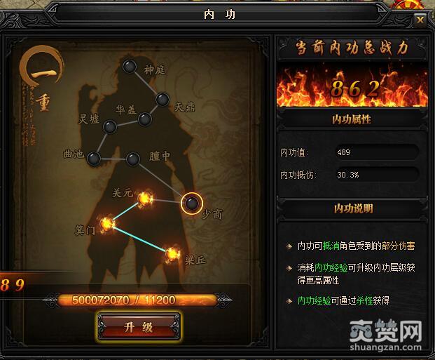 一重升级少商所需内功经验:11200,初始内功值:489,内功抵伤:30.3%。