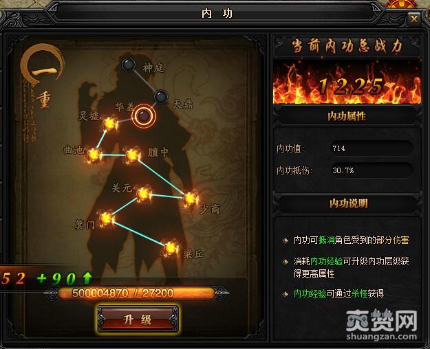 一重升级华盖所需内功经验:27200,初始内功值:714,内功抵伤:30.7%。