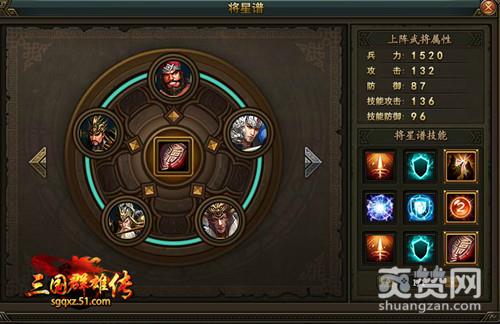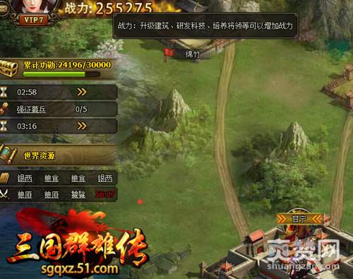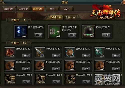 51《三国群雄传》战力提升系统分为:装备,武将升星,将星谱,科技和建筑等