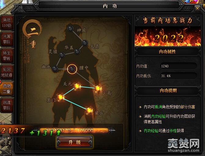 二重升级膻中所需内功经验:176000,初始内功值:1240,内功抵伤:31.4%。