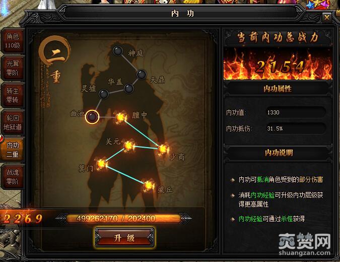 二重升级曲池所需内功经验:202400,初始内功值:1330,内功抵伤:31.5%。