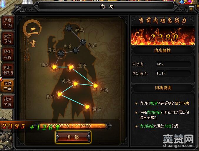 二重升级灵墟所需内功经验:230400,初始内功值:1419,内功抵伤:31.6%。