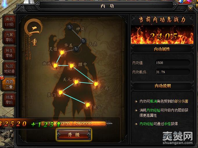 二重升级华盖所需内功经验:260000,初始内功值:1508,内功抵伤:31.7%。