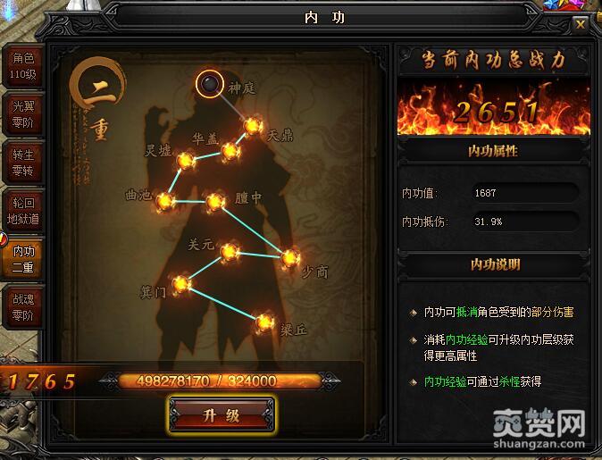 二重升级神庭所需内功经验:324000,初始内功值:1687,内功抵伤:31.9%。