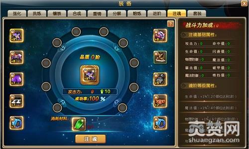 装备注魂唯一需要消耗的材料是灵魂晶石.灵魂晶石在强化注魂界面使用,装备注魂后可以永久提升属性.灵魂晶石的获取方法有很多种,玩家可以通过参加冒险世界的特殊活动获得灵魂晶石,也可以通过参加多人精英副本获得,也可以直接在无尽试炼中兑换灵魂晶石.