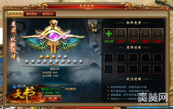 在哥们网《天书世界》只有佩戴魔器,才能享受魔将PK助阵哦!