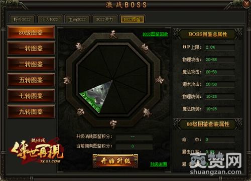 经过小编深入了解,原来这股风潮起源于此番51《铁血皇城》更新的“BOSS图鉴”系统,打开挑战boss界面可以看到新增了“BOSS图鉴”一栏,图鉴以八卦阵为形,总共6套BOSS图鉴,一套BOSS图鉴有八块,集齐一套图鉴后便课激活套装属性,并能对套装属性升级哦!那么图鉴要怎么获得呢?这个很简单通过野外地图的BOSS尸体就能挖出,不过50至90级地图BOSS最高挖80级图鉴;一、二转地图BOSS最高挖一转图鉴;三、四转地图BOSS最高挖三转图鉴以此类推九、十转地图BOSS最高挖九转图鉴。