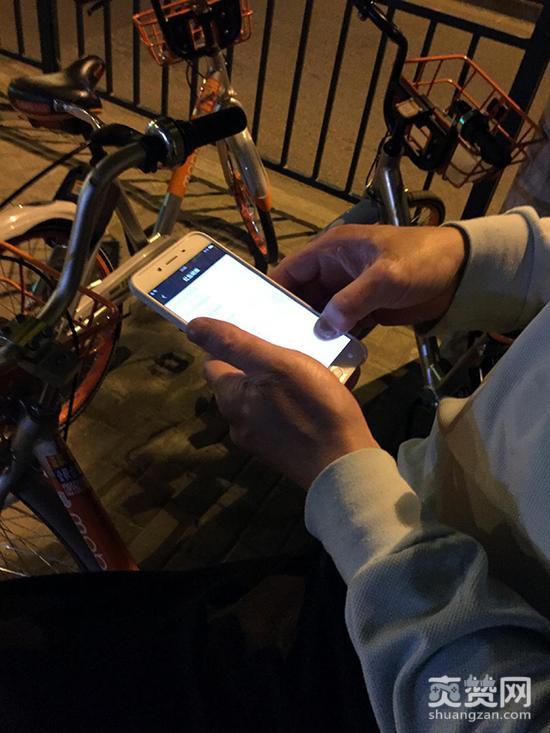 已经骑着一辆单车的中年男子,正在寻找另一辆“红包车”。