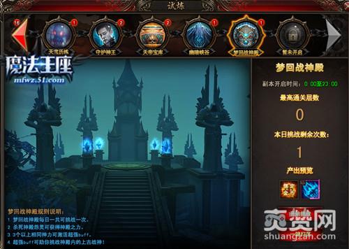 51《魔法王座》梦回战神殿的副本需先打神殿怨灵,获得buff,再挑战上古战神。