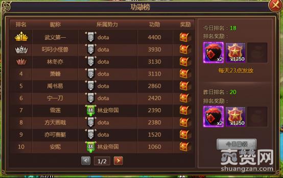 功勋排名奖励:系统将玩家每天的功勋排名,额外给玩家发放大量个人帮贡和结义酒,千万不能错过哟!