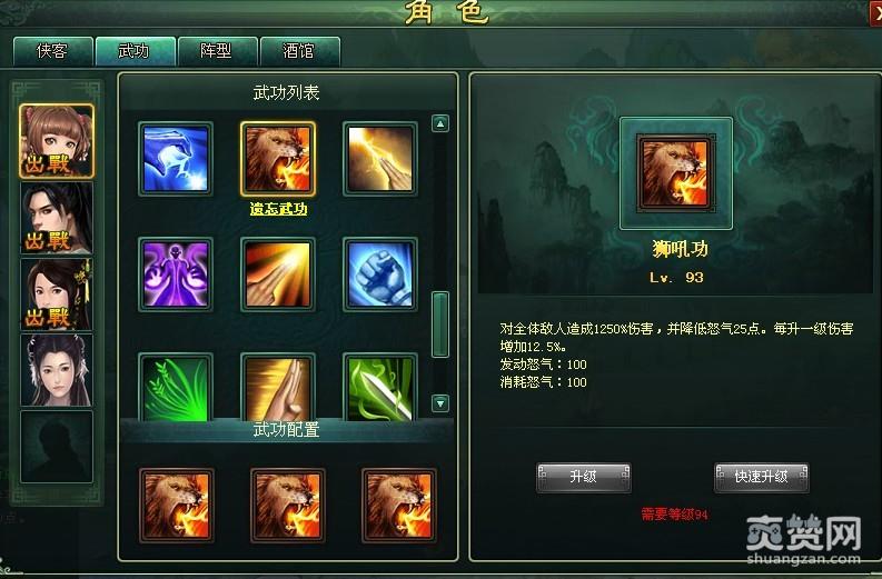 随着技能等级的不断提升,93级的狮吼功可对全体敌人造成1250%的伤害,秒杀一切路人甲乙丙。