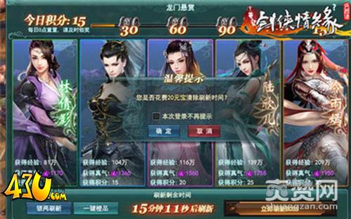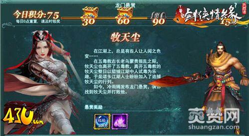 龙门悬赏活动是每位玩家每天都可以参加的活动,角色每天可完成一定次数的龙门悬赏,悬赏任务短时间内会自动刷新,玩家也可以使用元宝立即刷新任务或刷新任务品质,完成任务后玩家可获得海量经验与真气奖励,同时还可获得积分,而当积分累积到一定数量后,还可额外领取丰厚的积分奖励。