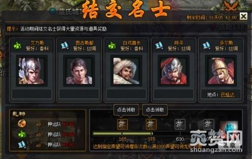 2、玩家亦可使用金币收买名士获得大量资源和声望奖励。