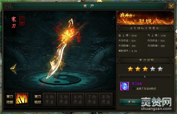 寒刀出鞘江湖风起云涌,世人都想一睹神器真容,而作为主角的你,却在一加入360uu《寒刀》的江湖里,便拥有了人人都将争夺的神兵利器,在游戏中,寒刀将是玩家战力提升的最重要手段,除了为玩家提升各项珍贵属性外,还将拥有独一无二的寒刀技能,群体攻击特效将是你杀怪PK的不二选择,同时伴随寒刀的提升,还将开启更为强大的铭纹系统,为你的兵刃添加强大的加成,独一无二的造型,强大霸气的特效,拥有寒刀,让你在360uu《寒刀》的世界里一往无前!