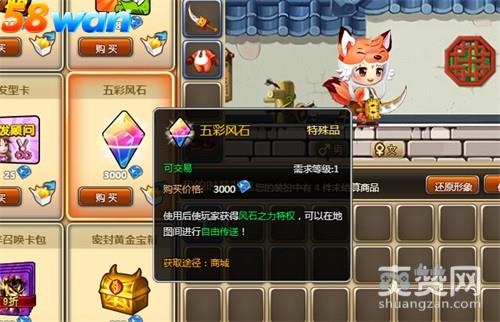 五彩风石,土豪必备,价值3000钻石.使用五彩风石后玩家可以获得风石之力特权,可以在地图间进行自由传送.不管在哪里,只要拥有了风石之力的特权,都可以进行自由传送.不限时间和空间的阻力.风石之力的特权让玩家彻底感受自由传送的快感!