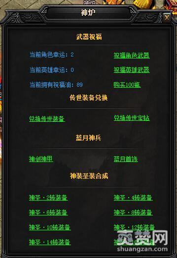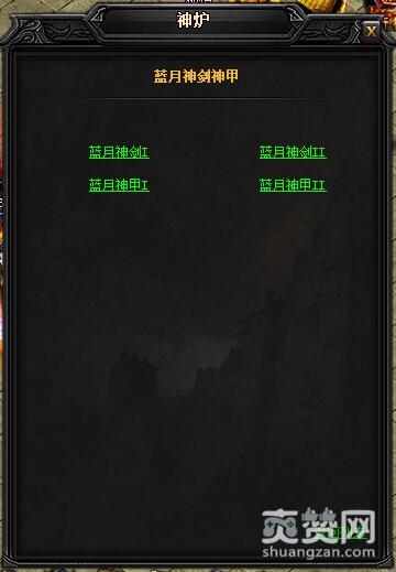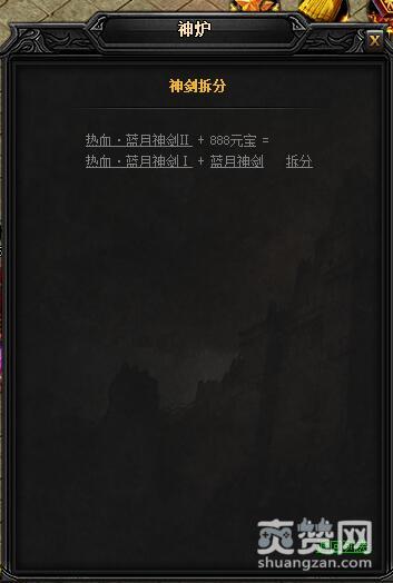 拆分的方法是到神炉处,点击蓝月神兵中的神剑神甲,然后在弹出的对话框中选择一项。这里我们选择的是蓝月神剑II。