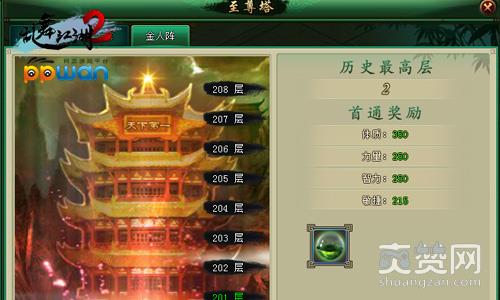 而至尊塔中的铜人阵是从101层开始,金人阵则是从201层开始,玩家只有完成了木人阵的挑战才可开启铜人阵的挑战,完成铜人阵的挑战才可开启金人阵的挑战!玩家每挑战到10的倍数层时,还可获得额外的极品奖励哦!当玩家将木人阵、铜人阵和金人阵全部挑战完成后,你将成为ppwan《乱舞江湖2》中武林人人称赞的英雄豪杰,当之无愧的天下第一!