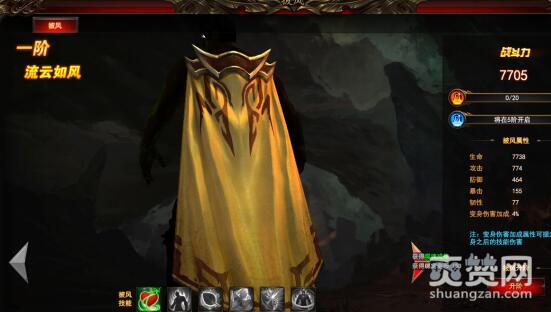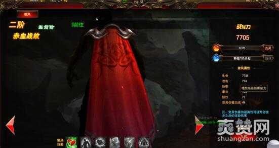 一开始小编将披风升级到二阶赤血战纹,没有增加其他任何附加属性。单独的战力就已经高达7705,战力提升速度的确蛮快的。